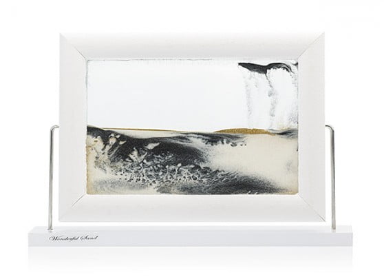 تابلو شنی wonderful sand در دو مدل رومیزی و پایه دار عرضه شده و بدنه ی شیشه ای دارد، درون این محفظه شیشه ای آب به همراه شن های رنگی در قسمت پایین تابلو قرار گرفته که با چرخاندن این تابلو هوا مانع پایین آمدن به یکباره شن ها شده و فرود آمدن شن ها به پایین باعث ایجاد شکل ها و طرح های مختلفی می شود لذا حرکت دلنشین شن ها داخل مایع تابلو و همچنین تصاویر زیبای ایجاد شده منتقل کننده حس خوشایند آرامش می باشد.
