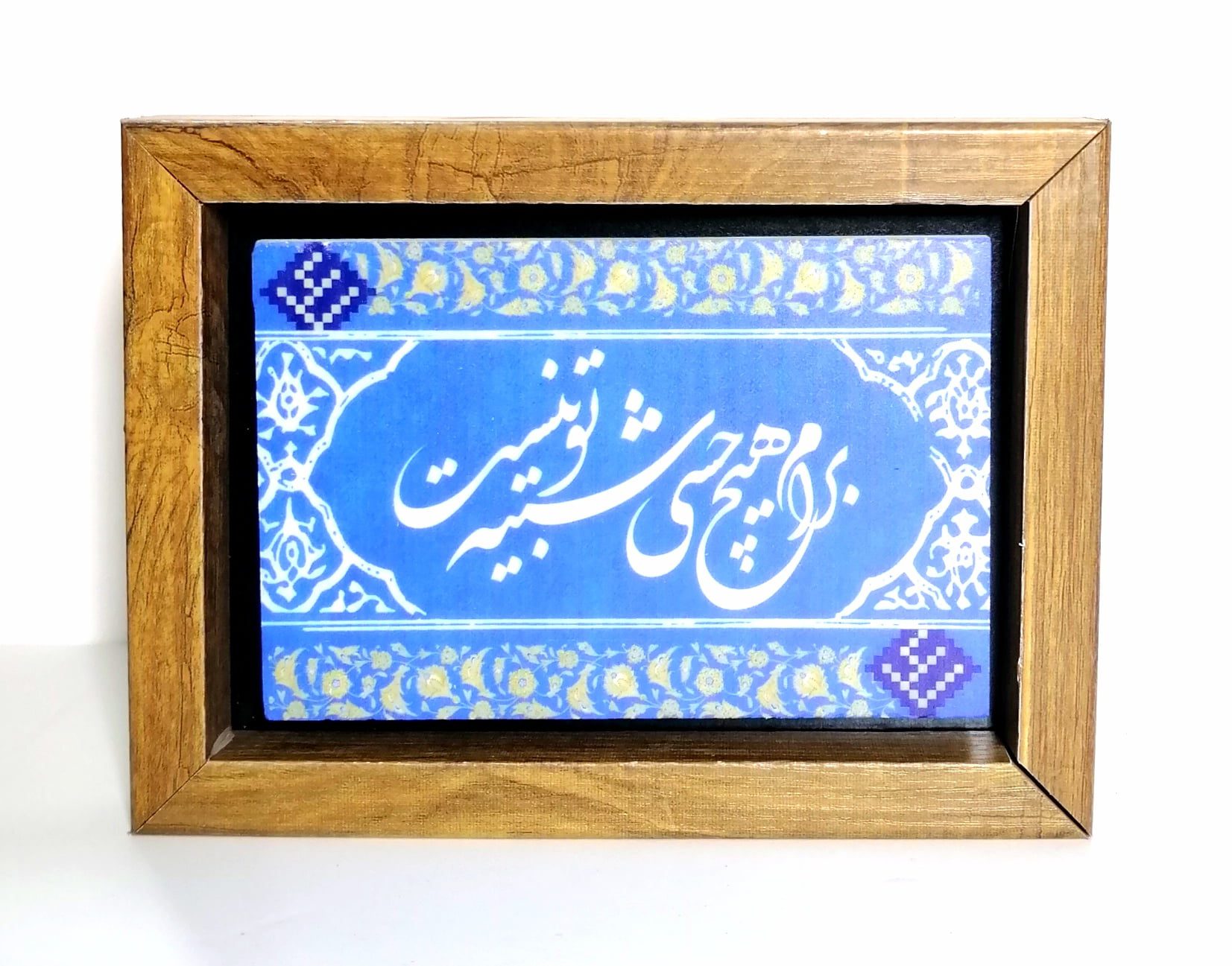 بدون شک یکی از زیباترین حروف الفبا در جهان، حروف الفبای فارسی و ایران یکی از معدود کشورهایی است که از خط خود به اشکال مختلف استفاده میکند.نستعلیق یکی از شیوههای نگارش خط در خوشنویسی فارسی است. این خط در ایران شکل گرفت و بیشتر هم در ایران رواج دارد و خوشنویسان ایرانی بیشتر با این خط به هنرنمایی میپردازند. خط نستعلیق معرف روح و فرهنگ ایرانی است و از آن در نوشتن متنهای ادبی و غیرمذهبی فارسی، اردو و به ندرت عربی استفاده میشود.«قاب خط نوشته روی سنگ طبیعی» یک محصول زیبای تزیینی است که نظر علاقهمندان به آثار منحصر به فرد و زیبا را به خود جلب خواهد کرد. تابلویی خوش نقش با قاب چوبی که می تواند حسابی در دکوراسیون داخلی خانه غوغا به پا کند. چوب ها که حتما نباید در ابعاد و مقیاس های بزرگ به کار گرفته شوند، گاهی هم می توانند به باریک ترین شکل ممکن در دکوراسیون داخلی خانه ظهور کنند. ترکیب چوب و سنگ را شاید بتوان اغوا کننده ترین مواد و مصالحی دانست که می توان از آن در طراحی دکوراسیون داخلی خانه استفاده کرد.این اثر با رنگ های بکار برده شده و عالی تهیه شده است روی سنگ که با شعری از شاعران ایران مزین شده میتواند یکی از انتخابهای شما برای تزیین خانه یا محل کار و حتی به عنوان هدیه باشد.این تابلو خطاطی شده، که با توجه به جنس مستحکم سنگ های مورد استفاده و کیفیت مواد رنگی به کار رفته، از جمله محصولات انتخابی مشتریان خوش سلیقه برای استفاده لوکس و دارای ماندگاری بالا در برابر نور خورشید و انواع نور مصنوعی، مواد شوینده و پاک کننده و آب می باشد. که میتواند به عنوان یک یادگار ماندگار نیز از طرف شما به دوستانتان هدیه داده شود . با جست و جوی عبارت گندمستان در نوار جست و جوی کالا میتوانید کلیه محصولات مارا مشاهده کنید.