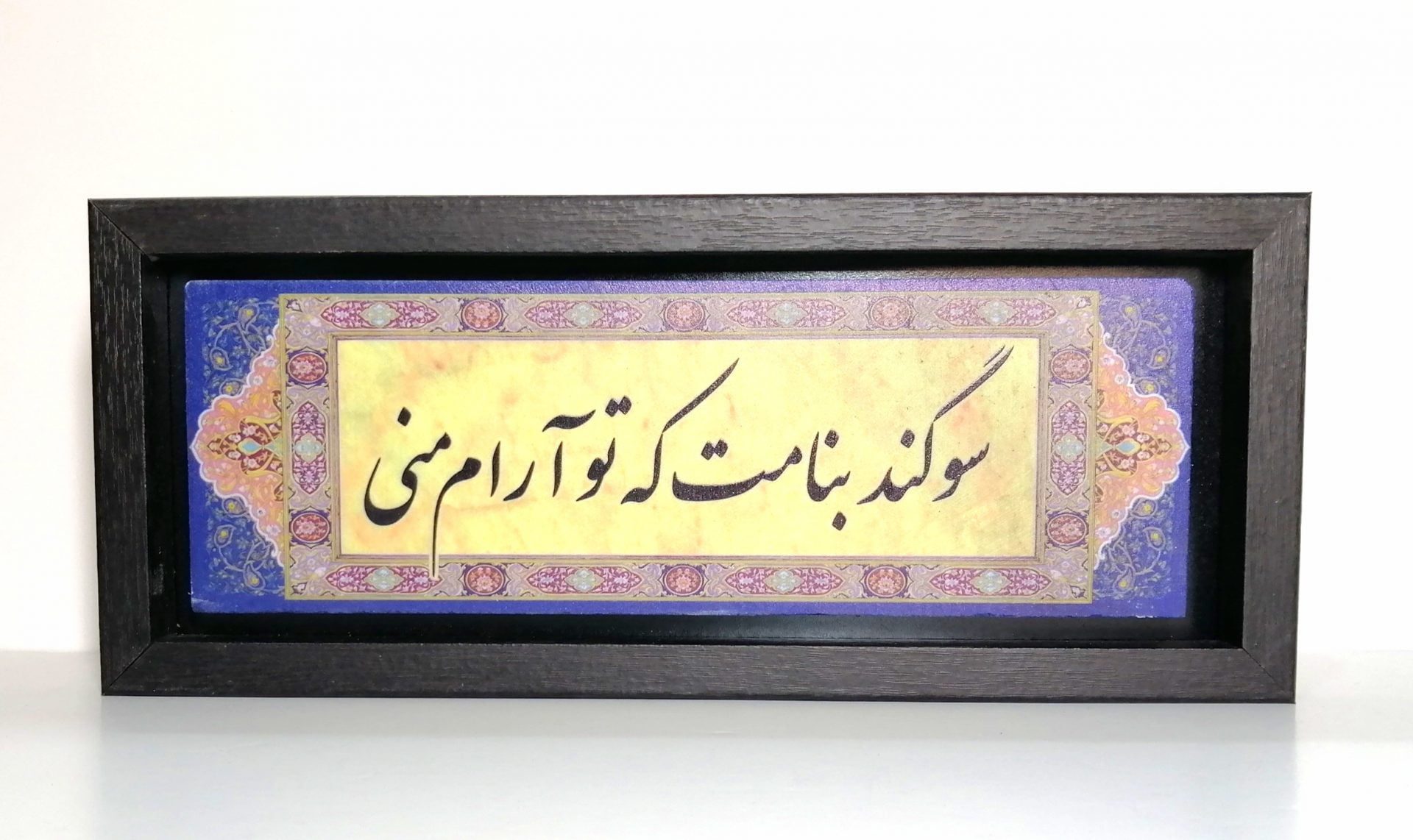 بدون شک یکی از زیباترین حروف الفبا در جهان، حروف الفبای فارسی و ایران یکی از معدود کشورهایی است که از خط خود به اشکال مختلف استفاده میکند.نستعلیق یکی از شیوههای نگارش خط در خوشنویسی فارسی است. این خط در ایران شکل گرفت و بیشتر هم در ایران رواج دارد و خوشنویسان ایرانی بیشتر با این خط به هنرنمایی میپردازند. خط نستعلیق معرف روح و فرهنگ ایرانی است و از آن در نوشتن متنهای ادبی و غیرمذهبی فارسی، اردو و به ندرت عربی استفاده میشود.«قاب خط نوشته روی سنگ طبیعی» یک محصول زیبای تزیینی است که نظر علاقهمندان به آثار منحصر به فرد و زیبا را به خود جلب خواهد کرد. تابلویی خوش نقش با قاب چوبی که می تواند حسابی در دکوراسیون داخلی خانه غوغا به پا کند. چوب ها که حتما نباید در ابعاد و مقیاس های بزرگ به کار گرفته شوند، گاهی هم می توانند به باریک ترین شکل ممکن در دکوراسیون داخلی خانه ظهور کنند. ترکیب چوب و سنگ را شاید بتوان اغوا کننده ترین مواد و مصالحی دانست که می توان از آن در طراحی دکوراسیون داخلی خانه استفاده کرد.این اثر با رنگ های بکار برده شده و عالی تهیه شده است روی سنگ که با شعری از شاعران ایران مزین شده میتواند یکی از انتخابهای شما برای تزیین خانه یا محل کار و حتی به عنوان هدیه باشد.این تابلو خطاطی شده، که با توجه به جنس مستحکم سنگ های مورد استفاده و کیفیت مواد رنگی به کار رفته، از جمله محصولات انتخابی مشتریان خوش سلیقه برای استفاده لوکس و دارای ماندگاری بالا در برابر نور خورشید و انواع نور مصنوعی، مواد شوینده و پاک کننده و آب می باشد. که میتواند به عنوان یک یادگار ماندگار نیز از طرف شما به دوستانتان هدیه داده شود . با جست و جوی عبارت گندمستان در نوار جست و جوی کالا میتوانید کلیه محصولات مارا مشاهده کنید.