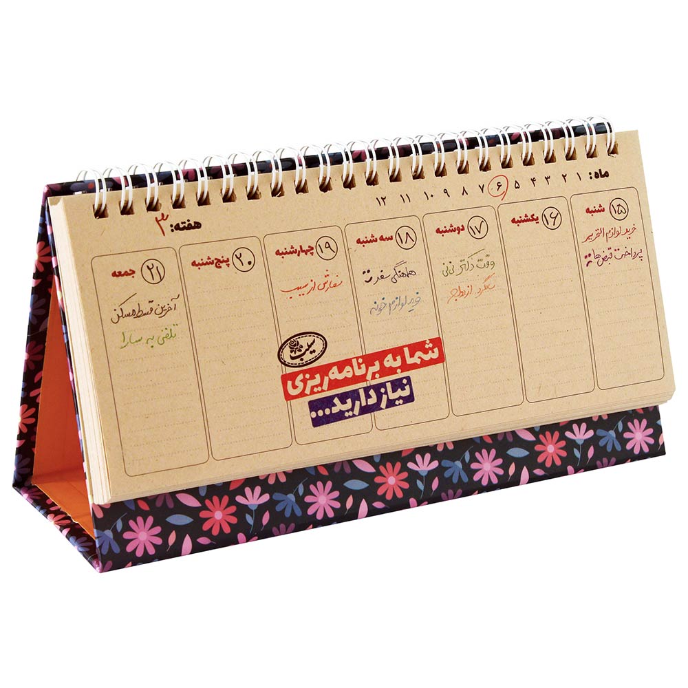 برنامه ریزی در دنیای پر مشغله ی امروز از ضروریات است، بسیار پیش آمده که به علت تعدد کارهای روزمره و متنوع بودن آنها، نتوانسته ایم به همه ی آنها برسیم و در پایان روز و با آرام شدن شرایط آنها را به یاد آورده ایم. پلنر رومیزی سیب با طراحی هفتگی، همیشه در جلوی چشم شما، کارهای روزانه را یادآوری خواهد کرد و شما مطمئن خواهید بود که چیزی را از قلم نینداخته اید. این دفتر رو میزی دارای 52 برگ مجزا برای 52 هفته ی سال می باشد و به طور کلی نیازهای شما را برای یک سال کامل مرتفع خواهد نمود.